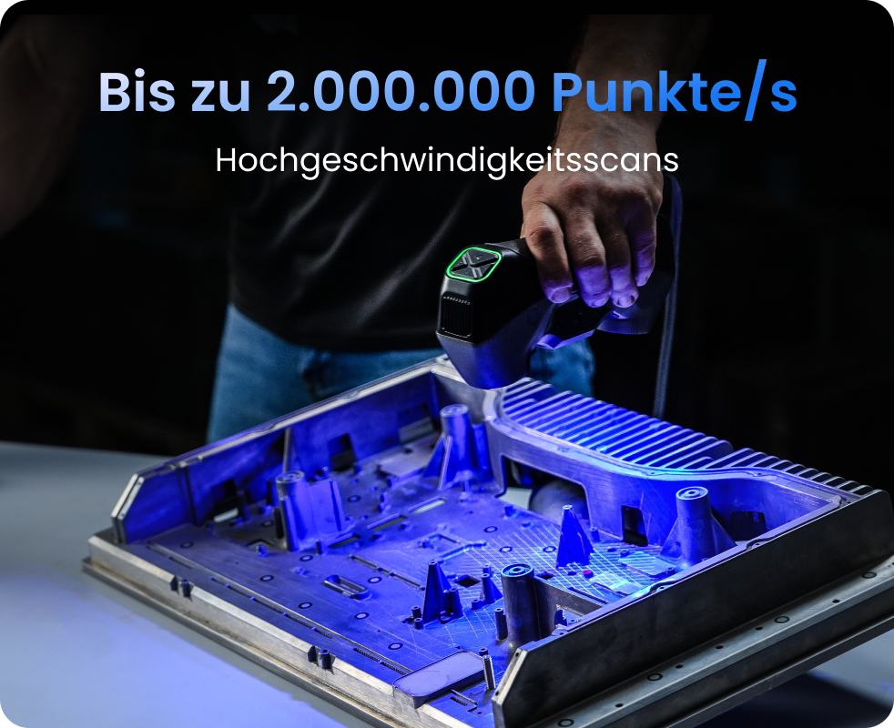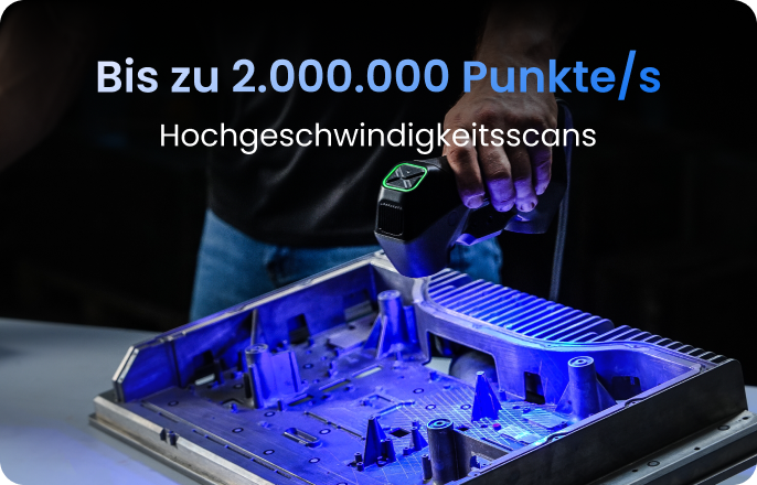 Erfassen Sie detailreiche Werkstücke ohne Marker in Sekunden – mit 62 leistungsstarken Blaulaserlinien und Punktwolkenerfassung von bis zu 7 Millionen Punkten/Sek. für schnelle, präzise 3D-Daten.
