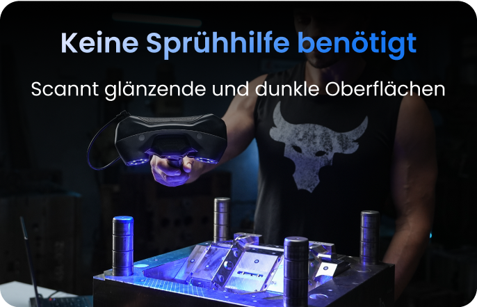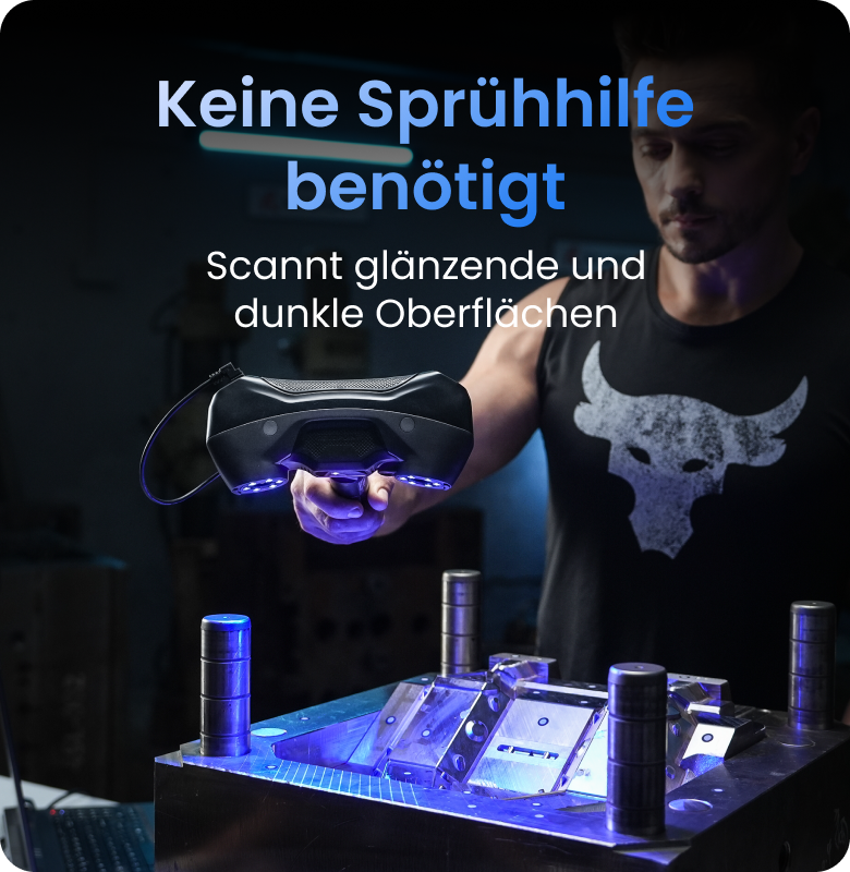Erfassen Sie mühelos flache, glänzende oder schwarze Oberflächen – ganz ohne Sprühhilfe.