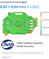 von bis zu 0,5 m und einer volumetrischen Genauigkeit von bis zu 0,05 mm.