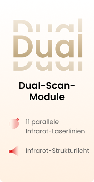 Der INSPIRE 2 verfügt über zwei Scanmodi: Vollfeld-Strukturlicht und 11 Infrarot-Multi-Line-Laser, die für unterschiedliche Materialien, Objektgrößen und Arbeitsbedingungen konzipiert sind.