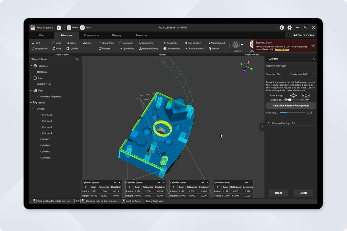 Works seamlessly with 3D scanners and supports importing CAD models, point clouds, and mesh files in major formats like STP, PLY, OBJ, STL, and PTS, ensuring broad compatibility.