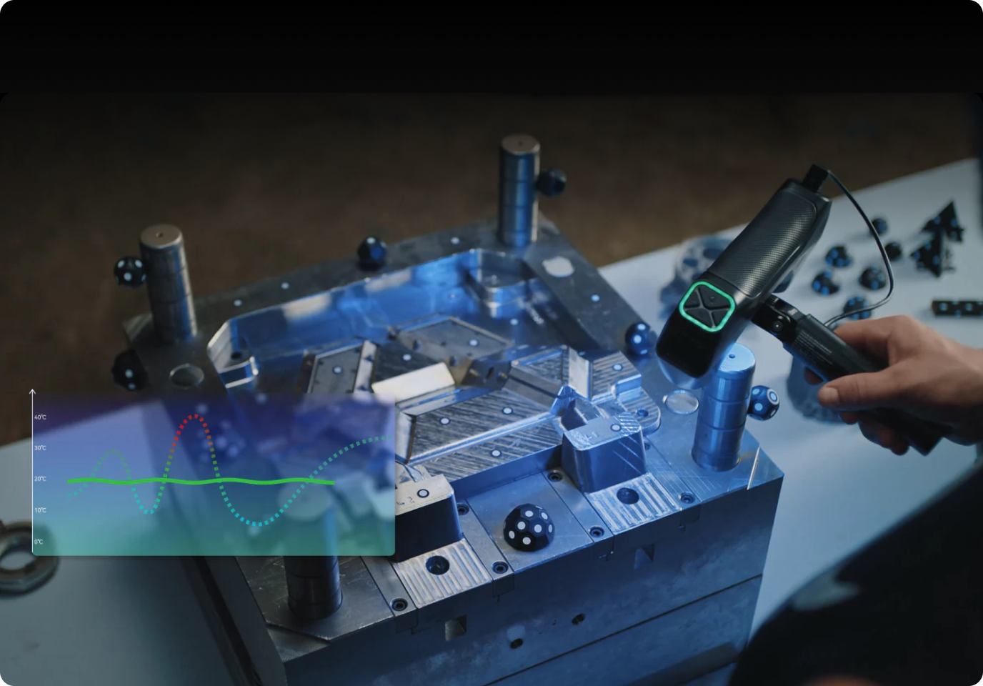 Temperature sensors monitor and display the scanner's temperature in real time to help maintain accuracy.