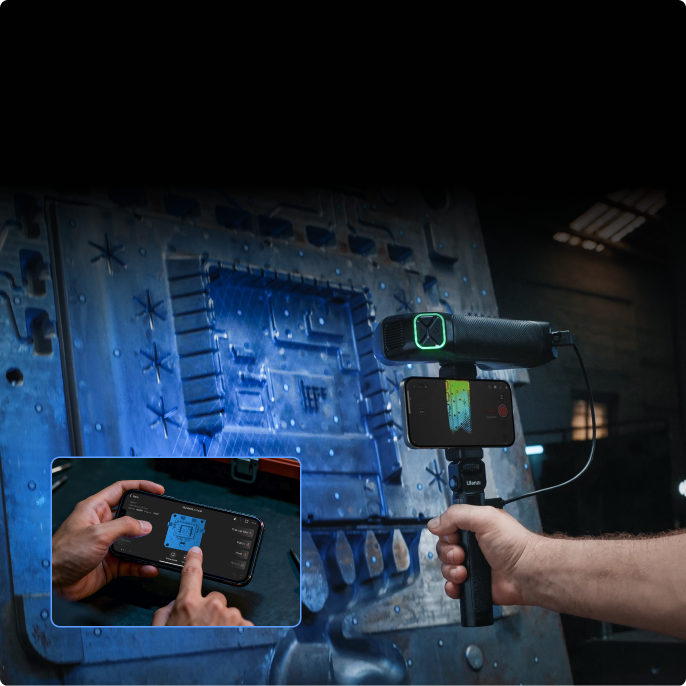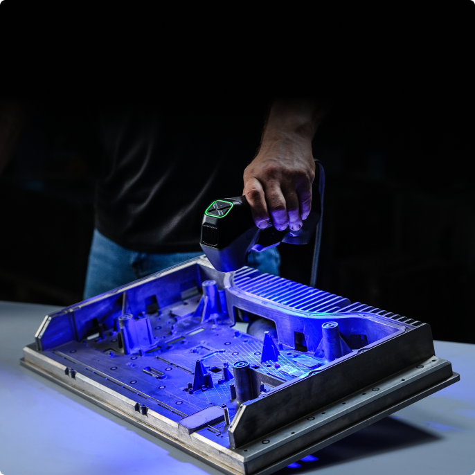 MetroY uses multi-line blue lasers to perform scans. MetroY Pro uses multi-line blue laser or full-field blue structured light to perform scans.