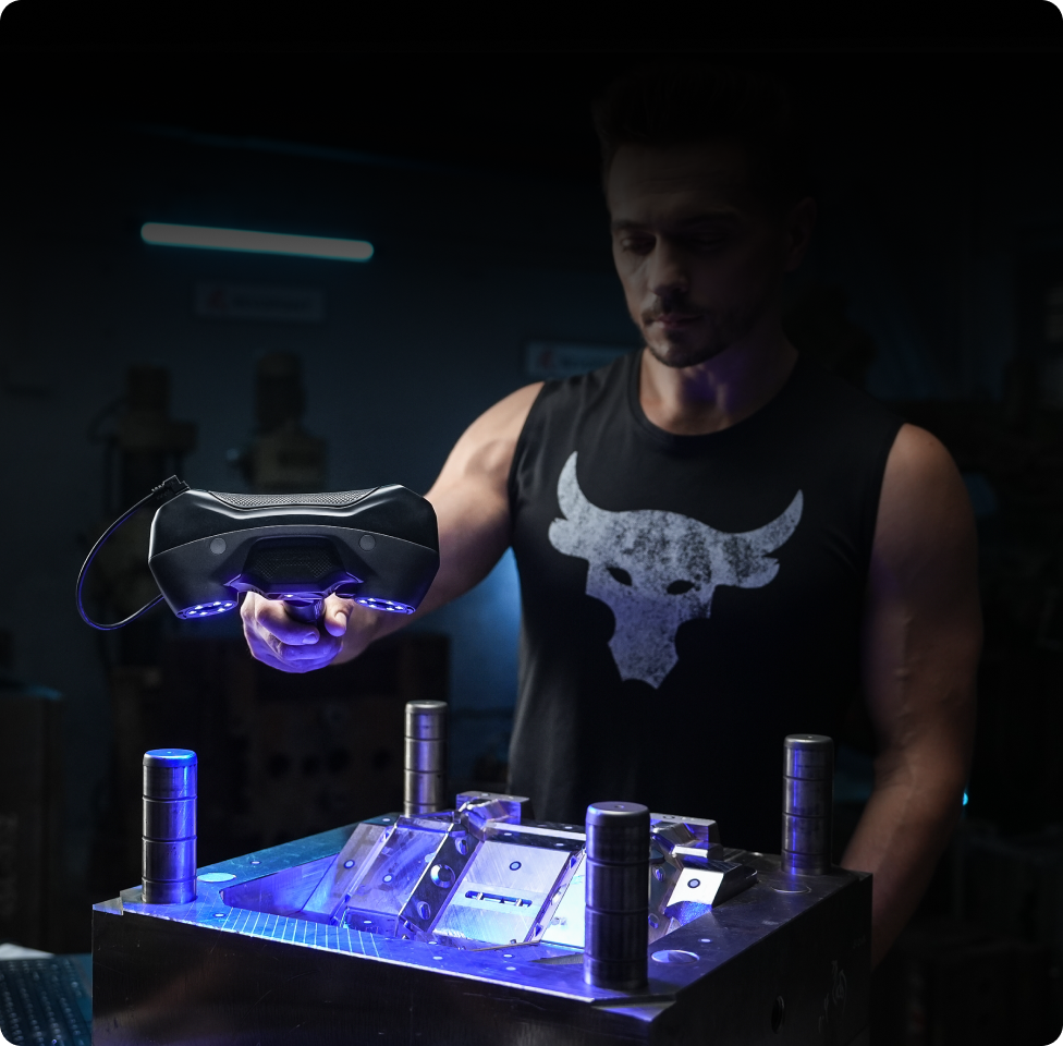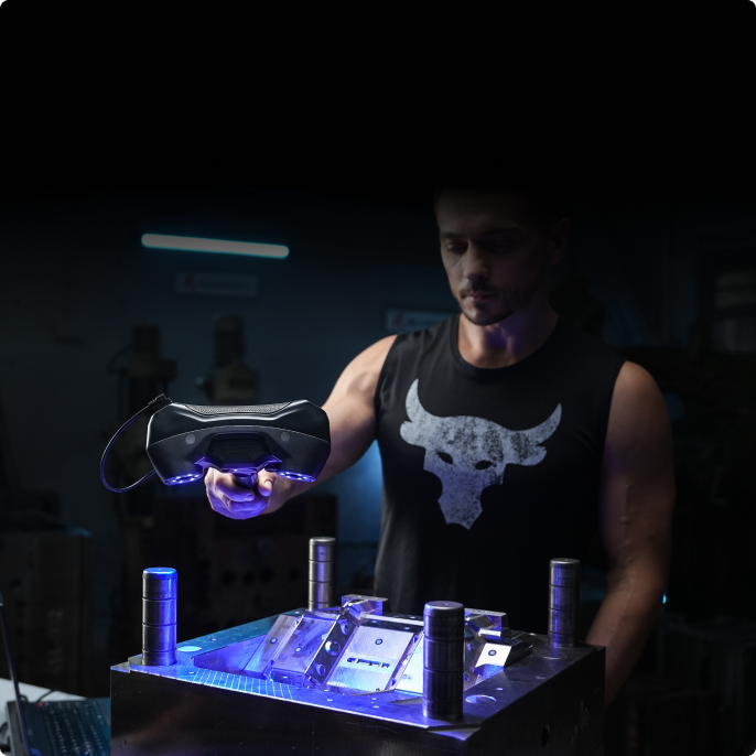 The MetroY series functions as an industrial 3D scanner by using multi line blue laser technology to capture high density point cloud data from small to medium workpieces. Its cross line, parallel line, and single line laser modes allow users to handle complex geometry, fine details, and deep features with stable tracking. MetroY Pro further expands industrial capability with full field blue structured light scanning and automatic turntable mode, supporting efficient data capture for inspection, reverse engineering, and scan to CAD workflows.