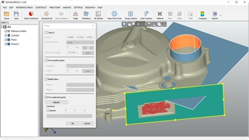 Quickly reconstructs planes, cylinders, cones, and spheres, and creates reference geometries like lines and points for aligning meshes to the world coordinate system or other scans.