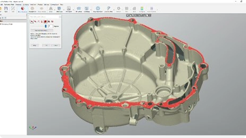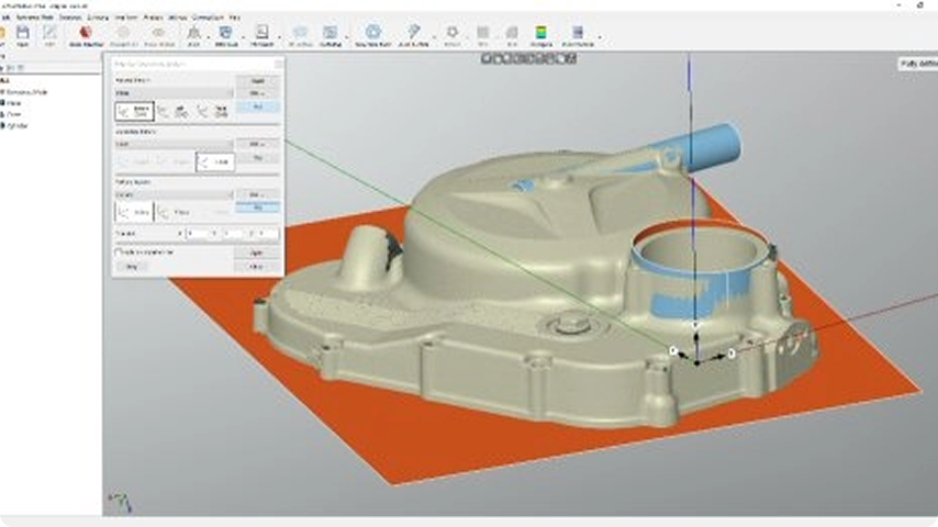 Create features based on the mesh, then compare and analyze to see errors between the new model and the scanned mesh. Custom tolerance values can be adjusted dynamically for precise error control, ensuring the model meets specifications.