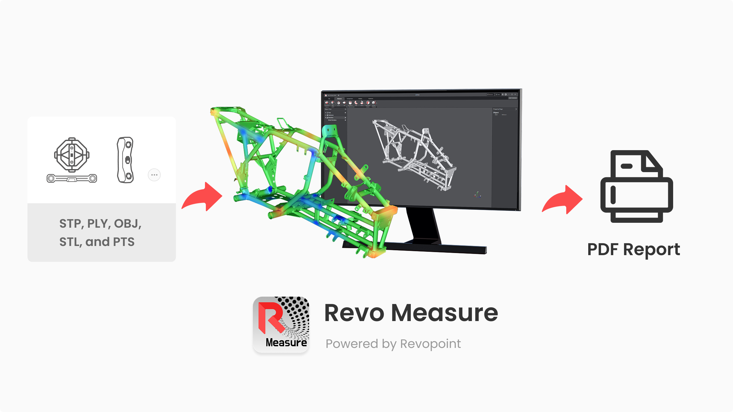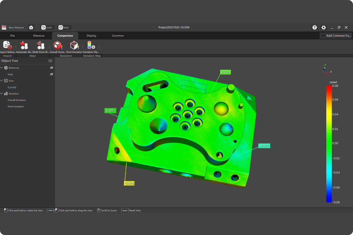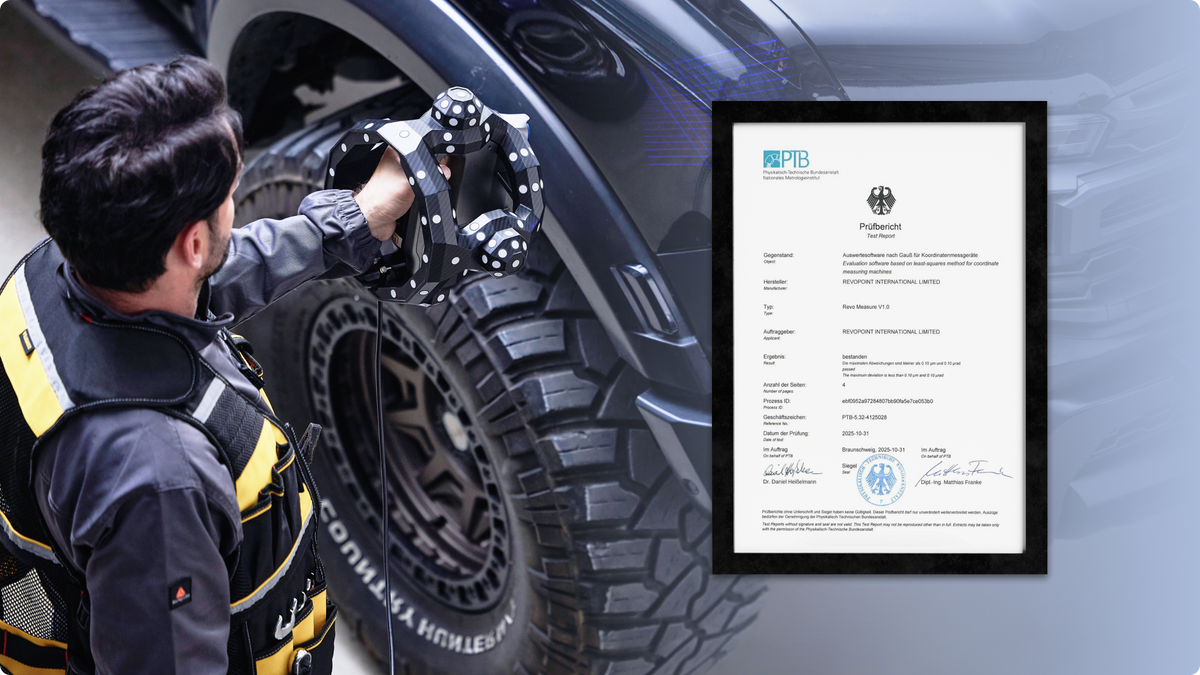Revopoint Measure is professional 3D metrology software that evaluates shape, dimensions, and quality by comparing point cloud or mesh data to CAD models or drawings. Seamless one-click integration with Revo Scan ensures a smooth and efficient quality control workflow.