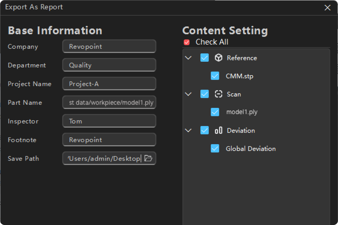 Easily present and keep records with standardized PDF reports that export measurement data, deviation analysis graphs, and color maps.